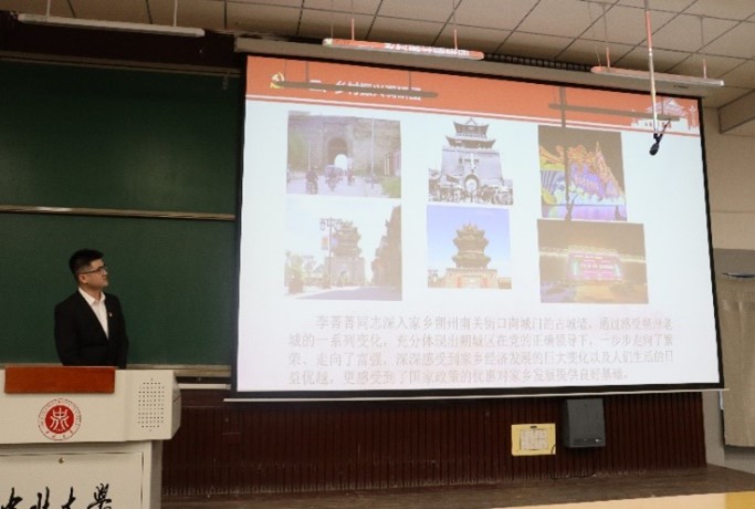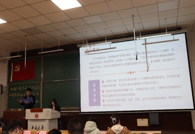 此次活动,学院本科生和研究生以党支部为单位对此次社会实践进行了总结汇报。同志们以个人或团队为单位,通过走访乡村,调研企业,志愿服务,现场采访等多种形式进行社会实践。各支部代表以PPT放映与视频展示相结合,从实践团队,活动内容、实践成果,反思与不足等多个维度对本次社会实践进行汇报展示。