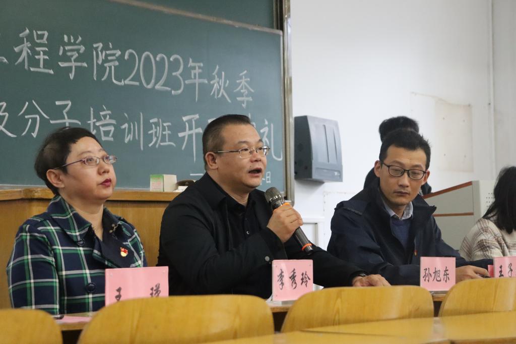 10月24日下午4点,本期入党积极分子培训班举行开班仪式,学院党委书记孙旭东,学院党委副书记李秀玲,院学生科科长王子威、团委书记王瑾,各学生党支部书记出席开班仪式,全体学员参加开班仪式。开班仪式上学院党委副书记李秀玲老师对本期培训班进行整体安排部署,本期培训班共分为理论学习、服务锻炼、实践活动三部分,李老师重点强调了本次培训的纪律要求与考核工作,要求全体学员端正态度,认真聆听老师们的授课并顺利通过最后的考核。随后,学员代表傅泓森发言,党员教育发展中心副主任杜佳璇同学带领全体学员做出培训承诺,要抓住学习机会,用党的创新理论武装头脑,加强自身修养,时刻向党组织靠拢。开班仪式最后一项由学院党委书记孙旭东老师讲话,孙书记寄语全体学员,要以当下开展的主题教育学习为契机,在学思践悟中汲取矢志不渝的理想信念,增强当担作为的使命责任,争取早日成为一名合格的中国共产党员。孙书记讲话后,开班仪式圆满结束。
