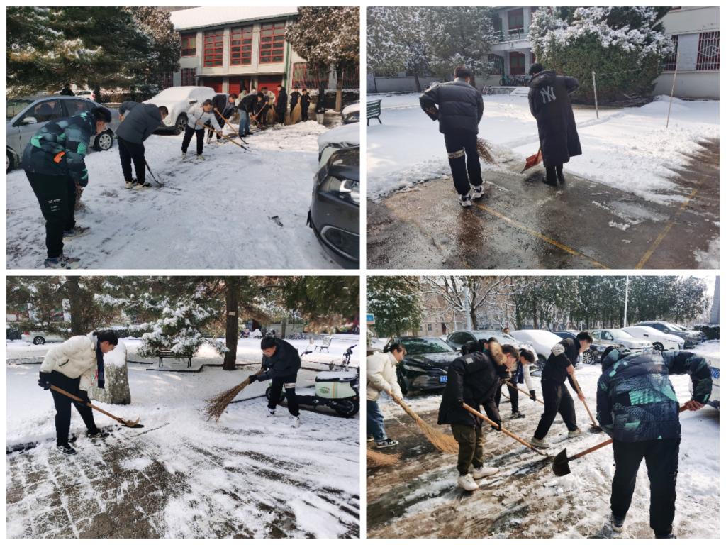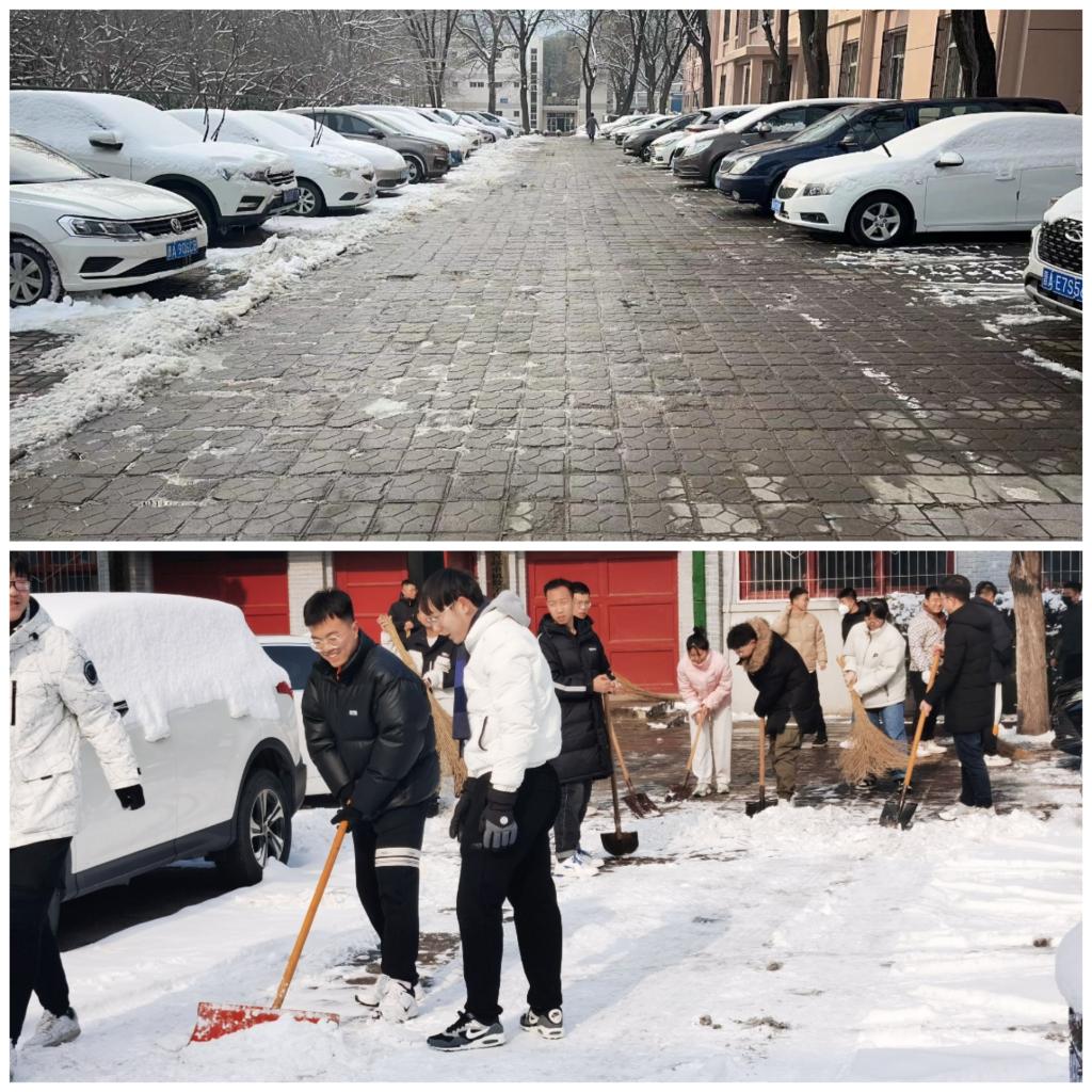 北国风光,千里冰封,万里雪飘。冬日的第一场雪,将校园点缀成了冰雪世界。但是,大家在感受着大雪带来的欢乐的同时,也体会着它给出行所带来的诸多不便。为给师生出行带来安全保障, 2023年12月11日中午12:30,中北大学机械工程学院研究生党员教育发展中心组织全体研究生在校党员进行志愿服务,为工字楼、五号楼扫雪。