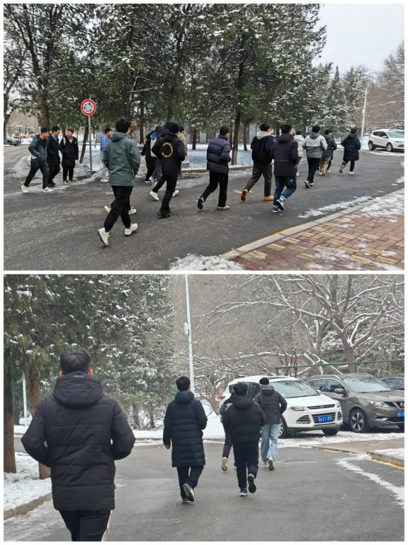 活动伊始,研究生党员发展教育中心常务副主任张灿同志宣布了比赛规则及路线。随后,李老师向大家讲述了跑步过程中的注意事项,并明确强调“友谊第一,比赛第二”。参赛同志们一个个摩拳擦掌、跃跃欲试,随着比赛开始口令的发出,他们意气风发的在阵阵寒风中坚持不懈地奔跑,勇往直前。