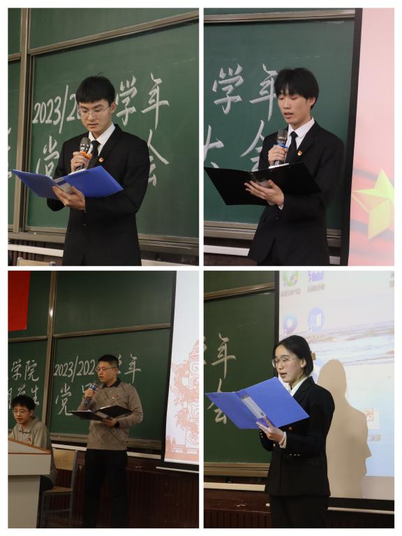大会在激昂的国际歌中拉开序幕。会议伊始,本科党员教育发展中心与研究生党员教育发展中心分别向大会做2023年工作总结汇报,两个中心2023年在学院党委的正确领导下,坚持以习近平新时代中国特色社会主义思想为指引,始终秉承为同志们做好服务的工作理念,同时通过举办特色活动的形式,提高机械工程学院全体学生党员的凝聚力和战斗力。两个中心汇报结束后,各基层学生党支部依次向大会做工作汇报,各支部从基础工作、特色工作、工作反思、工作计划等四个方面进行详细汇报。