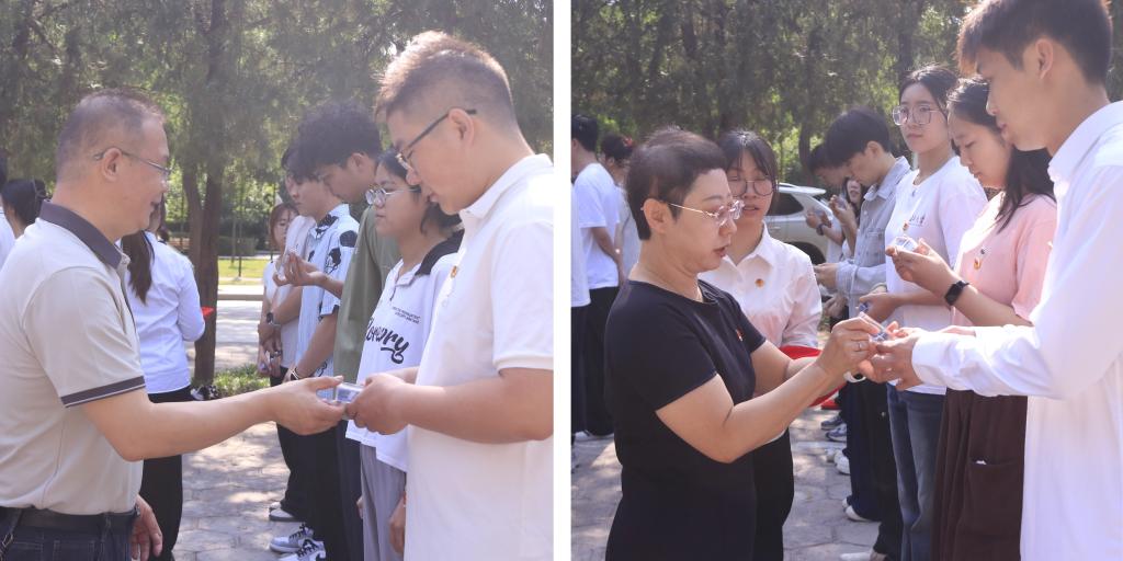 活动在《国际歌》中庄严开场。全体党员在院党委书记孙旭东的带领下重温入党誓词,誓言铿锵,坚定了理想信念。毕业生党员代表杜佳璇深情发言,表达将牢记初心使命,在新征程上勇担重任。随后,学院党委书记孙旭东、党委副书记李秀玲向毕业生党员代表赠送纪念印章,寄托组织的关怀与期望。