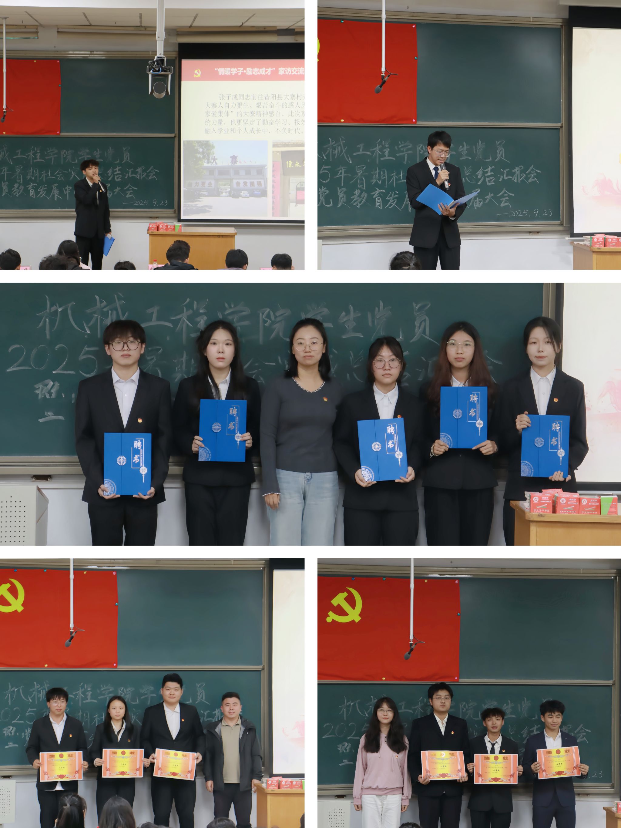 2025年9月23日下午,机械工程学院在08201H召开2025年暑期社会实践总结汇报会暨党员教育发展中心换届大会。党员教育发展中心主任李唯老师、相关学生党支部书记出席,全体学生党员参会。