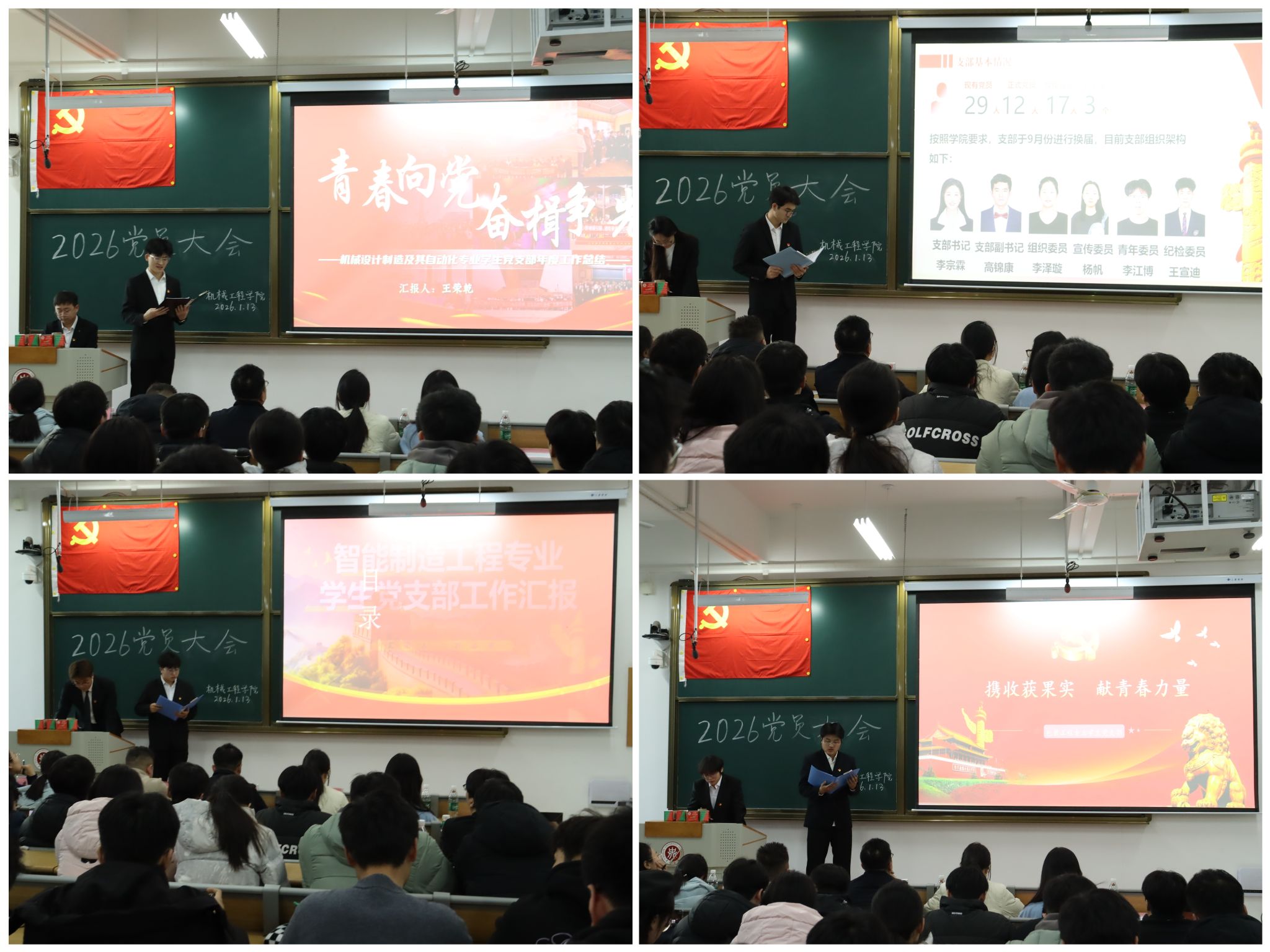 大会在激昂的《国际歌》中拉开帷幕,大会第一项为各本科生党支部就2025年基层党支部党建工作开展情况向大会作报告,各支部围绕本年度贯彻执行党组织决策部署情况、加强支部和党员队伍建设、完成基层党建任务、联系服务师生情况及存在的问题与改进思路等方面向大会报告。工作汇报环节后,全体参会人员学习了《国家主席习近平发表二〇二六年新年贺词》。
