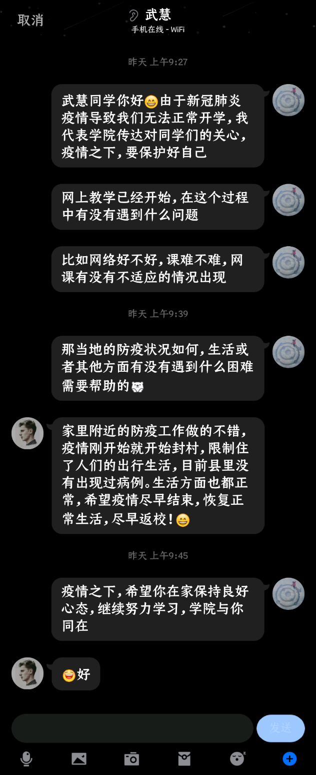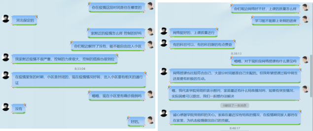 疫情的突然发生,中断了寒假“访万家”的活动活动进程。但是隔离病毒,并不隔离爱。应学院党委要求,各支部展开了线上家访,这种新形式的“访万家”也受到了党员同志和被访问同学们的支持和认可。