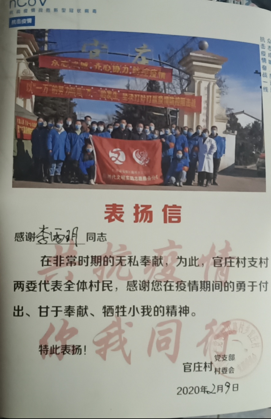 看到这些,我十分感动,部分原因是因为我们的工作被村民们理解,更重要的原因是我看到了淳朴善良的村民们在面对灾难时,或许刚开始会有些失措,但很快每个人都会积极行动起来,主动投入战斗,各自做着自己力所能及的事情。正是这份积极主动,让我坚信,在党的坚强领导下,我们的人民必将度过难关,夺取抗击疫情的全面胜利。