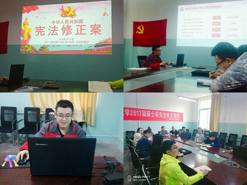 2018年4月25日下午,2017级研究生党支部在5号楼311会议室召开了以“学习宪法修正案的六大核心要义”为主题的组织生活会。会议由支部书记张艺兴主持人,支部12名党员参加了会议,1人缺席。
