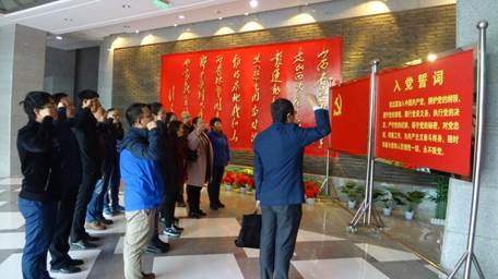 最后,支部书记秦慧斌同志带领全体党员面对党旗,一起重温了入党誓词,场面庄重,荡气回肠,同志们受到了感染,热血沸腾,心潮澎湃。