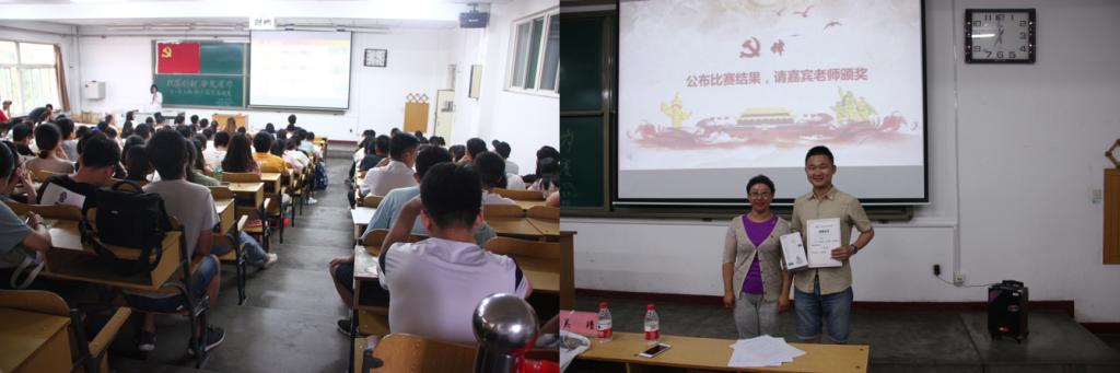 为庆祝新中国成立70周年,纪念改革开放40周年,进一步提升学生党支部凝聚力、战斗力和创造力,2019年6月4日下午,由我院党员发展教育中心主办的“改革创新,奋发有为”主题微党课决赛在08301教室如期举行。莅临本次决赛现场的评委及嘉宾有:院党委副书记李秀玲老师,院学生科科长王子威老师、全体辅导员老师及党员发展教育中心成员和各学生党支部书记等。
