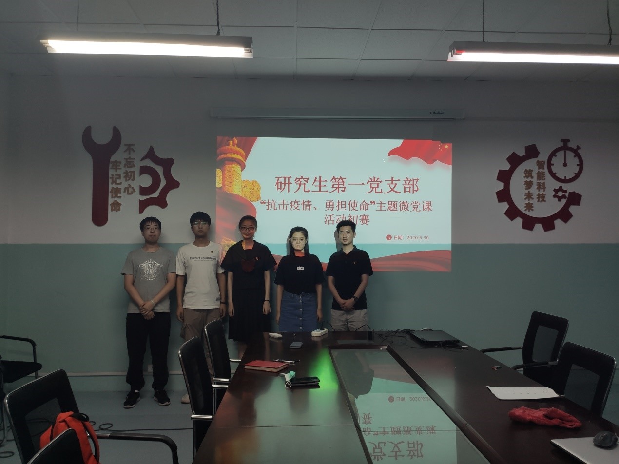 机械工程学院研究生第一党支部于2020年6月30日下午19:30在明学楼311召开了“抗击疫情、勇担使命”主题微党课活动初赛,本次比赛有来自三个党小组的四名同学参加。活动由党支部书记郜冉主持,研究生第一党支部全体党员参加了此次会议。由于疫情原因,除参赛选手和评委之外的全体党员在线上观看比赛。