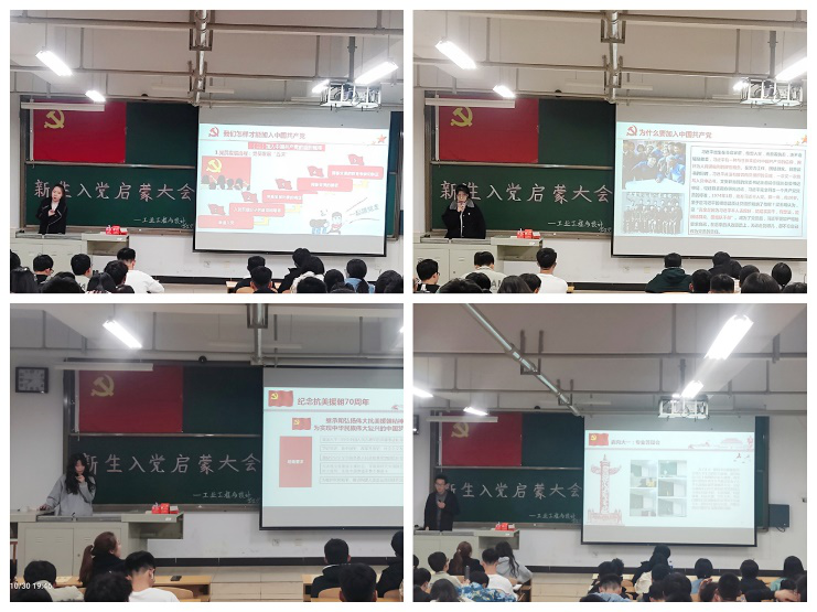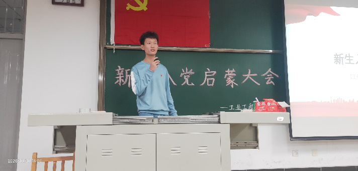 大会伊始,马世杰同志为大家介绍了中国共产党是什么样的政党。随后封静琳同志为大家讲述了为什么要加入中国共产党。在大家对中国共产党有了初步的了解和认识后,栗娜同志向新生介绍党员发展流程以及讲解入党申请书的书写规则。随后,平佳龙同志为大家介绍了工业工程与设计学生党支部的概况、党支部特色活动以及支部党员风采。
