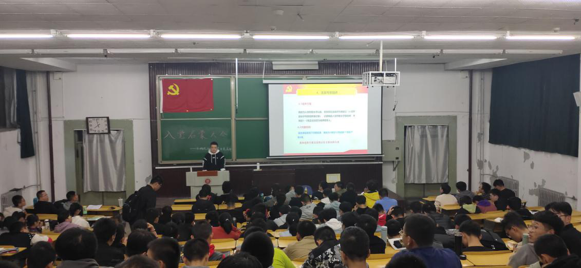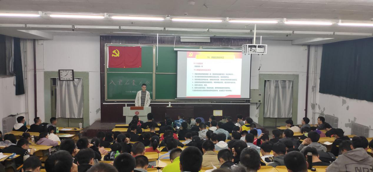 会议上,学生党支部支委会成员从加强对党的认识、端正入党动机、自觉接受党组织培养考察及如何做一名合格的大学生党员四个方面进行了详细的讲解。讲解中,党支部副书记邢启恺同学主要向同学们简述了党的性质、宗旨、原则及党领导中国人民所取得的伟大成就,并着重强调了树立正确入党动机的重要性,组织委员史纬龙同学详实介绍了大学生发展党员的具体要求,明确讲解了入党程序等。同时,要求同学们在积极入党的过程中要“处理好树立远大理想与过好今天大学生活的关系”、“处理好思想入党和组织入党的关系”。入党是一个神圣的事情,想要入党,一定要做一个勇争上游的人,党是国家和人民的先进代表,想要向党组织靠拢就一定要严格要求自己,希望同学们可以从思想上、行动上提升自己。 然后,优秀保研党员张宏伟学长和郭靖伟学长分享了自己的学习经验,为同学们细致介绍了保研的准备工作,宝剑锋从磨砺出,梅花香尽苦寒来,学长们用自身经历向大家诠释了坚持的意义。