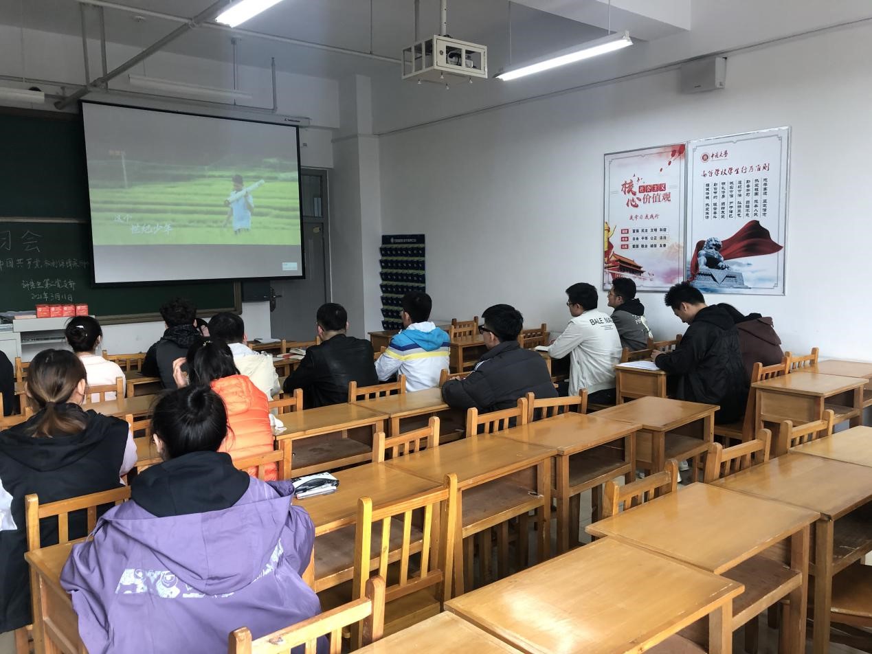 在本次会议中,四方面内容依次展开,首先在理论学习中,由组织委员宋保全同志的带领,我们一起学习了《中国共产党党员权利保障条例》以及“7个问题带你读懂新修订《中国共产党党员全力保障条例》,共同观看了人民日报发表的建党100周年视频“少年”,会议内容强调,广大党员要正确认识和处理义务与权利、责任与担当、行使权利与遵守纪律的辩证统一关系。作为新时代的党员干部,要珍惜自己的民主权利,同样也要切实履行党员义务,为党的事业作出自己应有的贡献。谈心谈话中,研究生第二支部采用支委之间,党员和支委之间,以及党员之间进行谈心谈话的方式,相互交流思想,指出存在的问题并提出意见建议。会议第三环节召开了党小组会议,三个党小组组长组织本小组党员对照入党誓词,联系实际进行了党性分析,并查找了各小组党员在政治、思想、学习、工作、能力、作风方面的问题和不足。会议最后,由党支部的四名支委进行了自我分析,依次查找了自身在发挥政治能力和组织能力方面存在的差距,工作中是否存在形式主义和官僚主义的问题。
