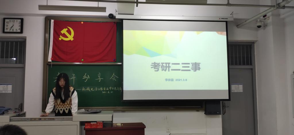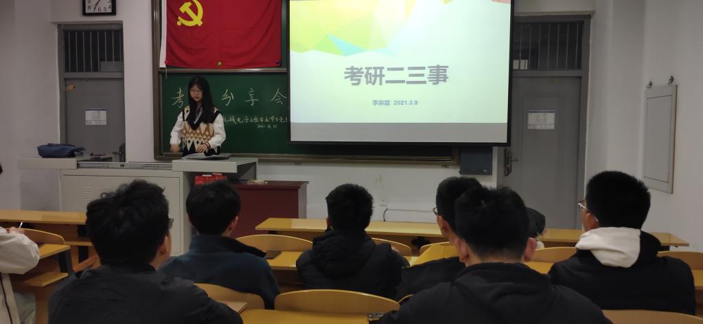 为充分发挥党员先锋模范作用,持续强化服务型党支部建设,机械电子工程专业学生党支部于3月10日晚在15108H组织开展了考研经验分享会。由机械电子工程专业学生党支部书记李宗霖老师主讲。