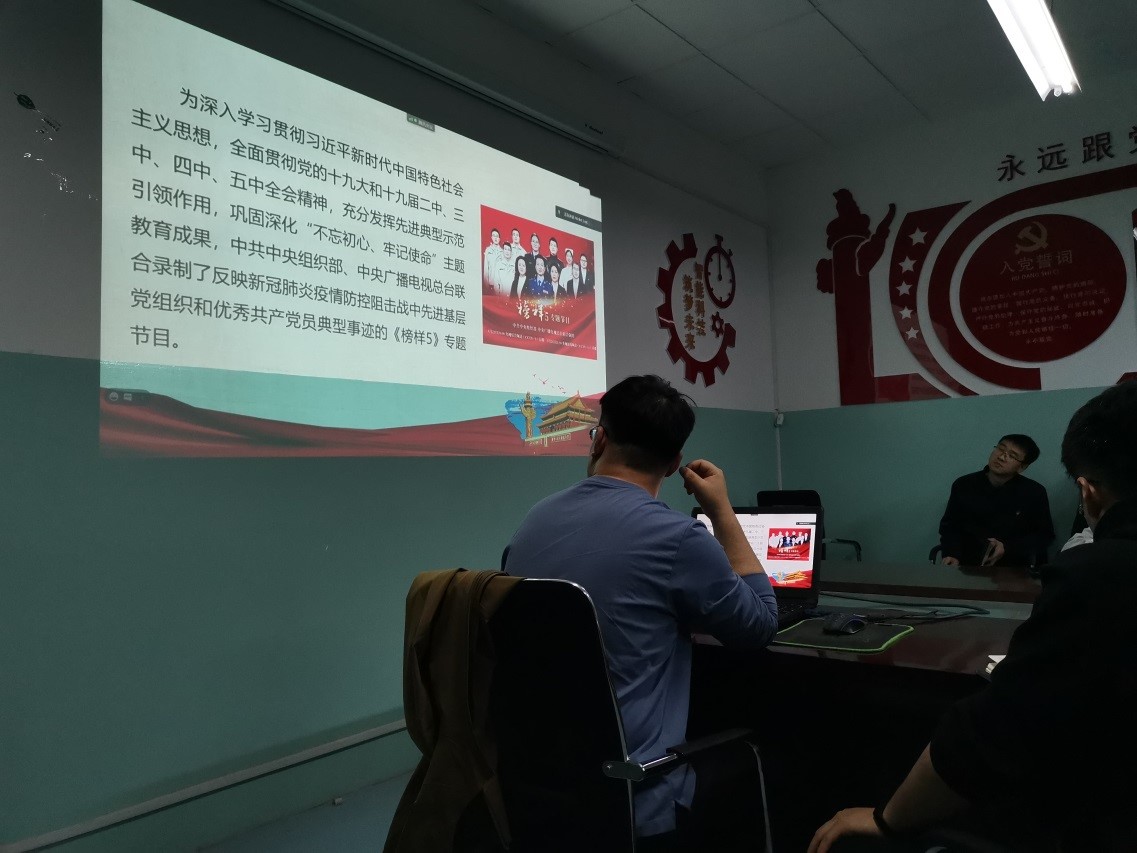 为深入学习贯彻习近平新时代中国特色社会主义思想,全面贯彻党的十九大和十九届二中、三中、四中、五中全会精神,充分发挥典型示范引领作用,巩固“不忘初心、牢记使命”主题教育成果,研究生第三党支部以党小组为单位组织召开理论学习会,组织学习收看《榜样5》专题节目。