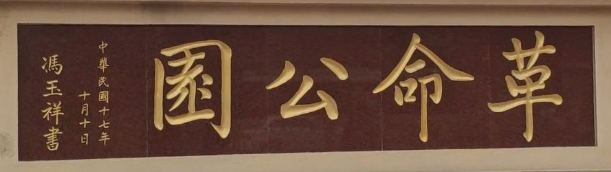 怀着无比崇敬的心情,我来到了公园的入口,映入眼帘的便是由冯玉祥将军亲笔题词的“革命公园”四个大字。进入公园,绕过喷泉水池,沿着中轴线建造的重要建筑,依次为革命亭、忠烈祠、湖心亭等,东西大冢、东忠烈祠、西忠烈祠则隐于两侧的树林之中。