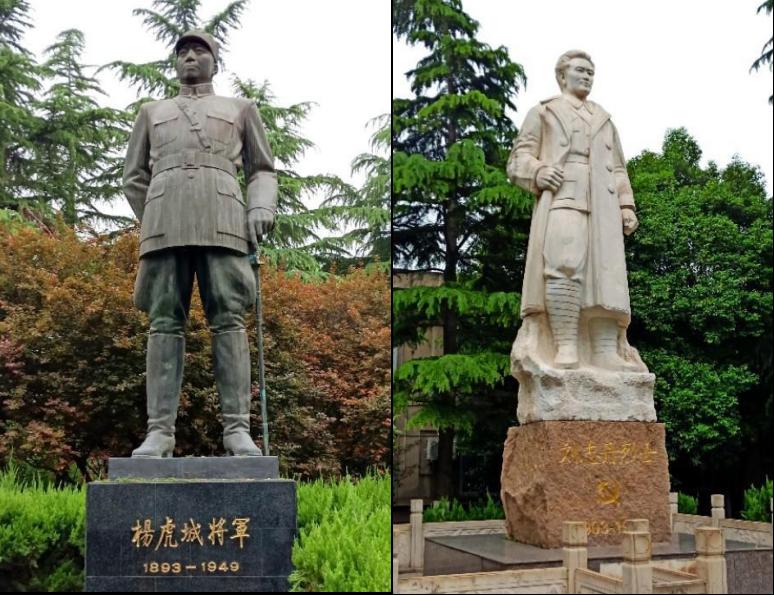 在新中国成立后,革命亭被改为三层,在顶部南侧檐下,悬挂着寇遐隶书的“革命亭”;在亭后,便是忠烈祠,作为展厅,在这里我们可以看到大量的珍贵图片以及史实资料,在那个动荡的年代,我看到了二虎守长安的坚定,看到了万千将士和陕西民众对北洋军阀刘镇华暴行的愤慨。刘镇华率镇嵩军对周边诸县烧杀抢掠、奸淫掳掠、无恶不作,造成了数十万民众流离失所、饥寒交迫、长达八九个月之久。期间饿、病、冻、战死的军民就高达五万人,但是不得出城安葬,只在皇城东北角空地上挖了两个大坑,早早掩埋,层层叠压,极为凄惨。在西安解围后,填平了这两个万人坑,堆起了坟冢,这就是革命亭两侧东西大冢的由来。除了这些,在忠烈祠的两侧,还分布着大大小小六个石碑以及人物雕像,纪念当时牺牲的西安市民和英烈。