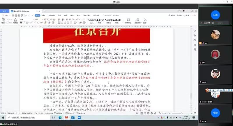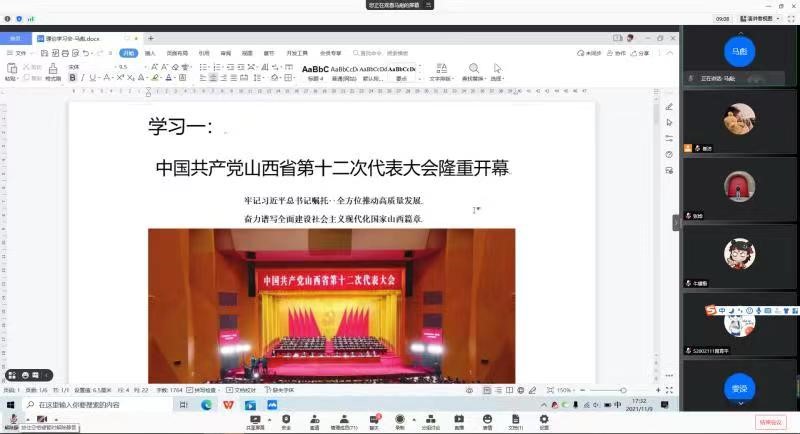 中北大学机械工程学院研究生第二党支部于2021年11月9日下午5:30举行线上理论学习会,此次会议由党支部书记崔洁同志主持,马彪同志主讲,研究生第二党支部全体党员、发展对象、积极分子参加了此次会议。