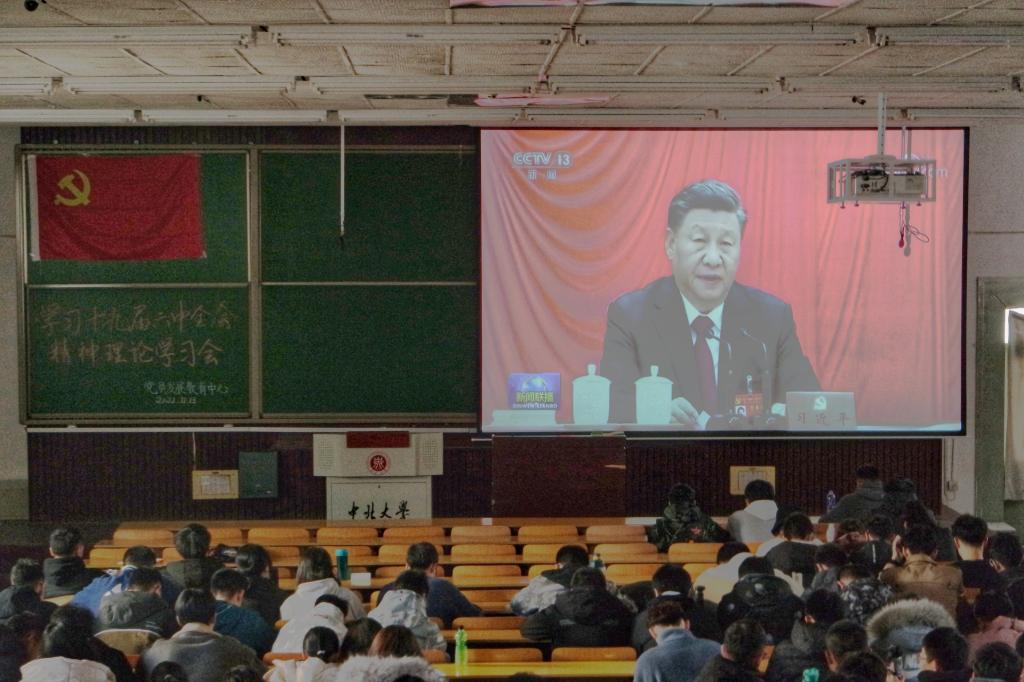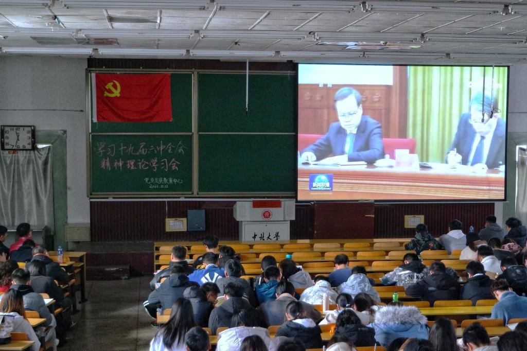 2021年11月13日,机械工程学生党支部全体成员在07103,07202和07104教室学习观看了中国共产党第十九届中央委员会第六次全体会议公报。