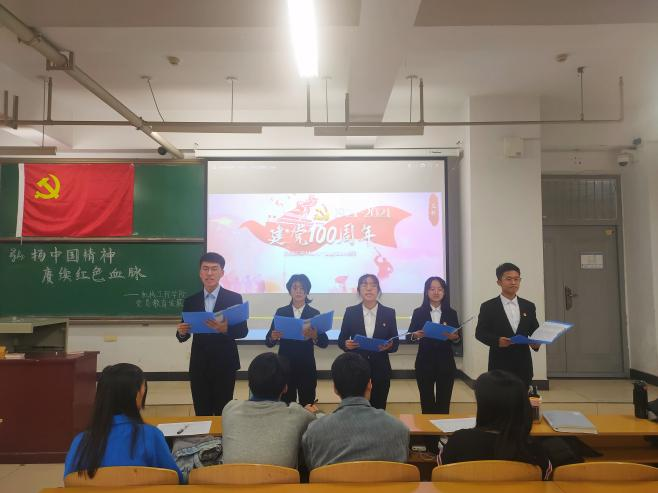 为深入贯彻学习习近平新时代中国特色社会主义思想,深入开展建党一百周年宣传教育,11月7日,机械工程学院中国伟大建党精神诵读初赛,于15106教室顺利举行。学生代表曹帅,杨凤仪,任希望,秦振洋,张丽娜担任此次评委,全院共有22组选手参赛。