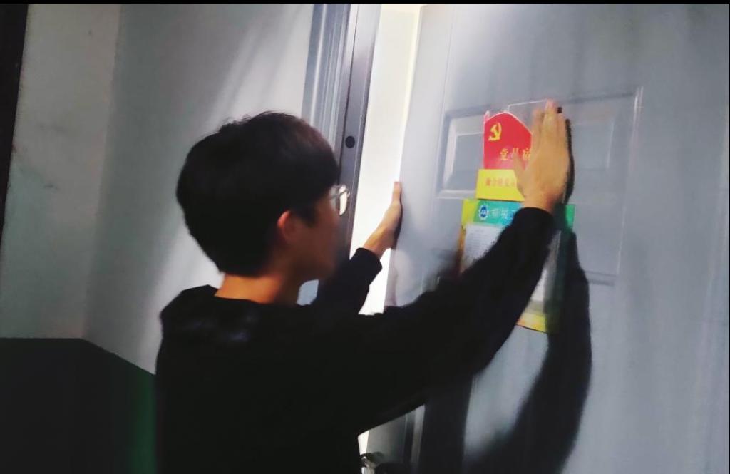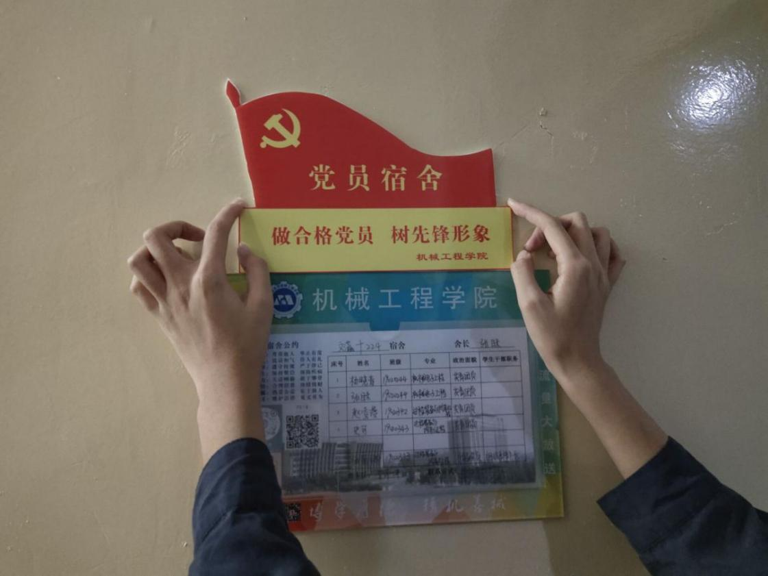 过程中,学生党员们怀着崇高的敬意,将党员宿舍标志张贴在宿舍门上,大家纷纷表示:“很荣幸能成为党组织的一员”“感谢党组织的培养与信任”“在以后的学习生活中要更加以身作则”。