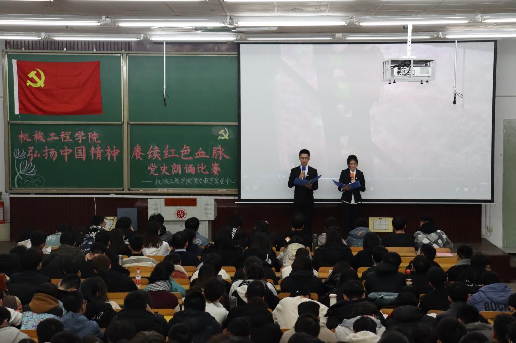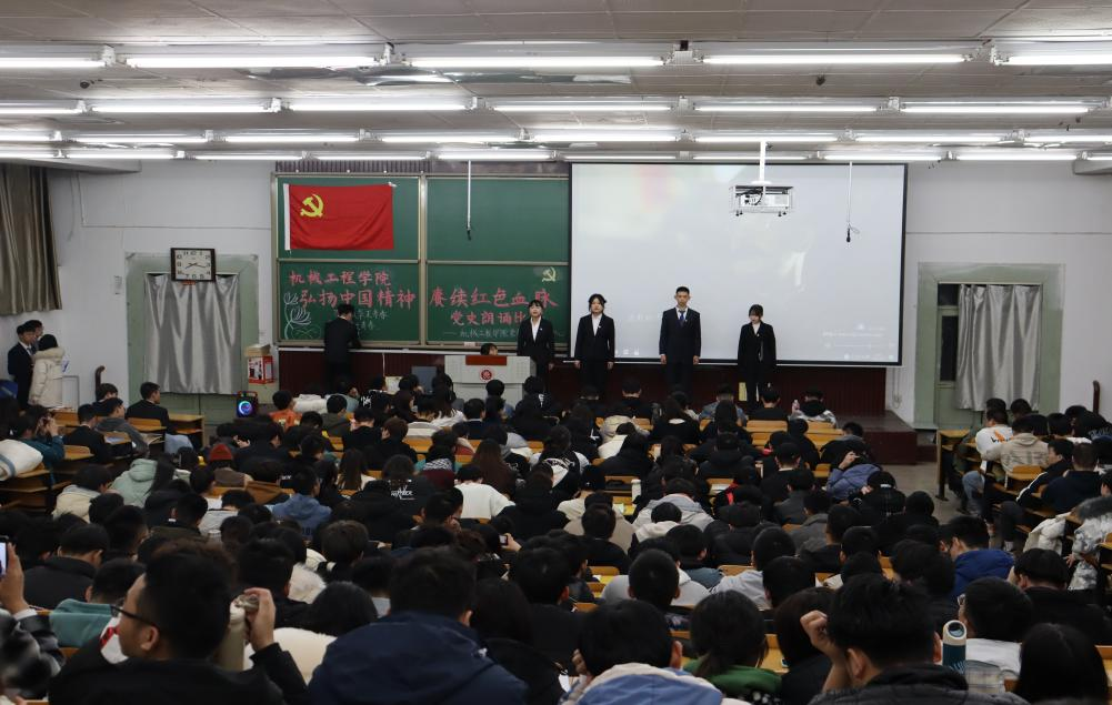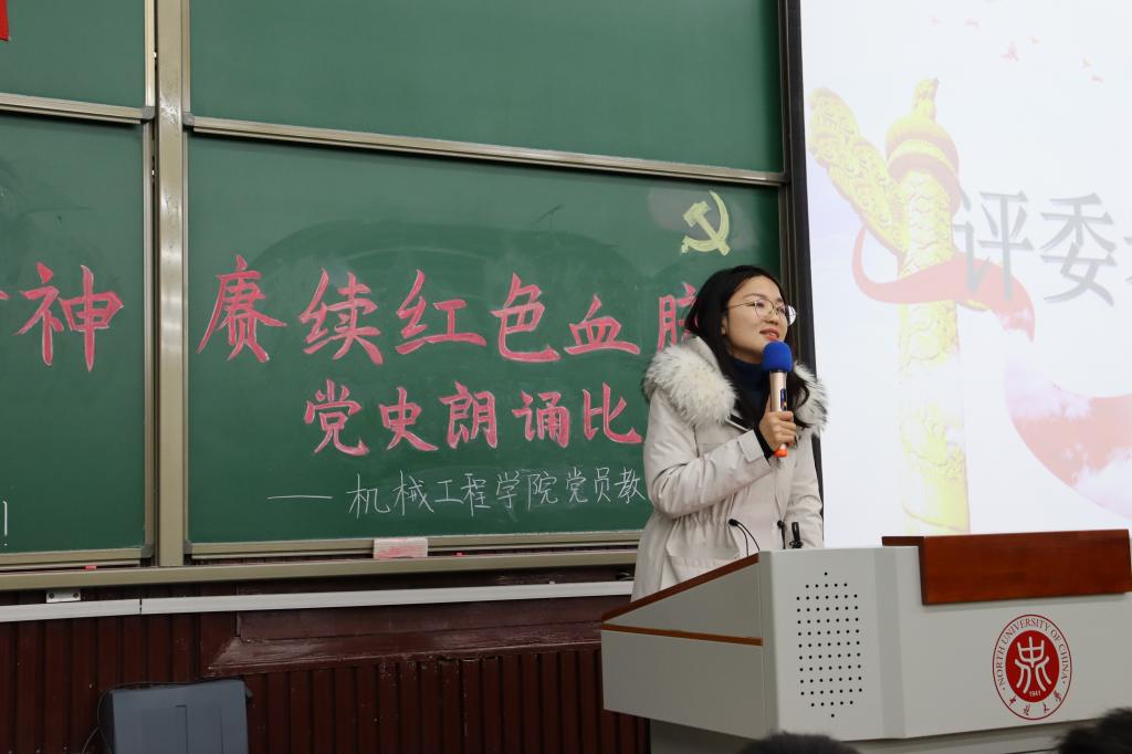 为深入贯彻学习习近平新时代中国特色社会主义思想,深入开展建党一百周年宣传教育,12月7日,机械工程学院“弘扬中国精神、赓续红色血脉”党史朗诵决赛于07103教室顺利举行。机械设计制造及其自动化专业第一学生党支部书记李红丹老师,机械设计制造及其自动化专业第二学生党支部书记程希冉老师,过程装备与控制工程专业学生党支部书记李沛坤老师担任评委出席了本次比赛。