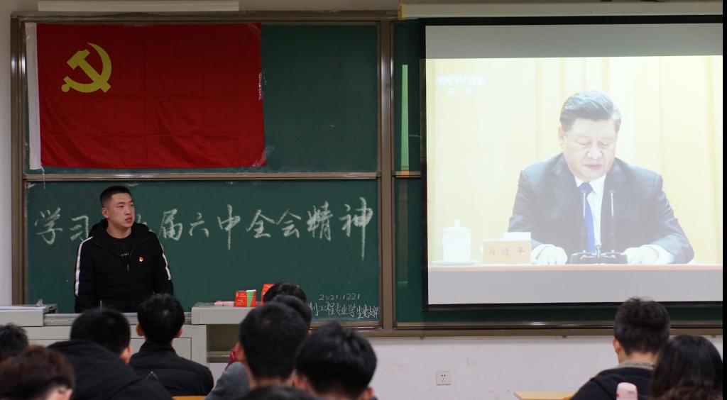 2021年12月21日晚19:00-21:00,过程装备与控制工程专业学生党支部于15号楼201教室集中学习十九届六中全会。组织全体人员专题学习领会全会精神的丰富内涵与核心要义,并部署学习贯彻工作。