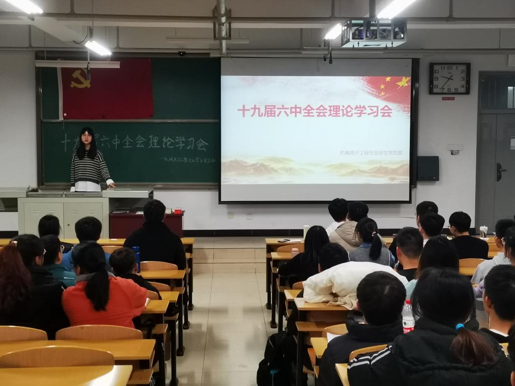 为深入学习贯彻党的十九届六中全会精神,扎实推动党史学习教育,机械电子工程专业学生党支部于2021年12月21日在教室15109开展十九届六中全会理论学习会。大会由支部书记李宗霖同志主持,支部全体党员出席会议。