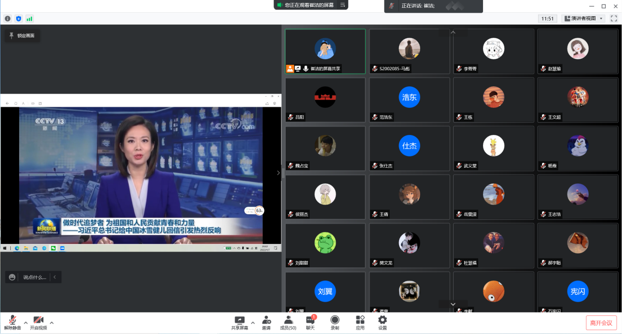 机械工程学院研究生第二党支部于2022年4月7日下午20:00于线上腾讯会议召开了研究生第二党支部理论学习会,会议的主要内容是学习贯彻习近平总书记给中国冰雪健儿回信精神,会议由第二党支部书记崔洁同志主持,研究生第二党支部全体党员参加了此次会议。