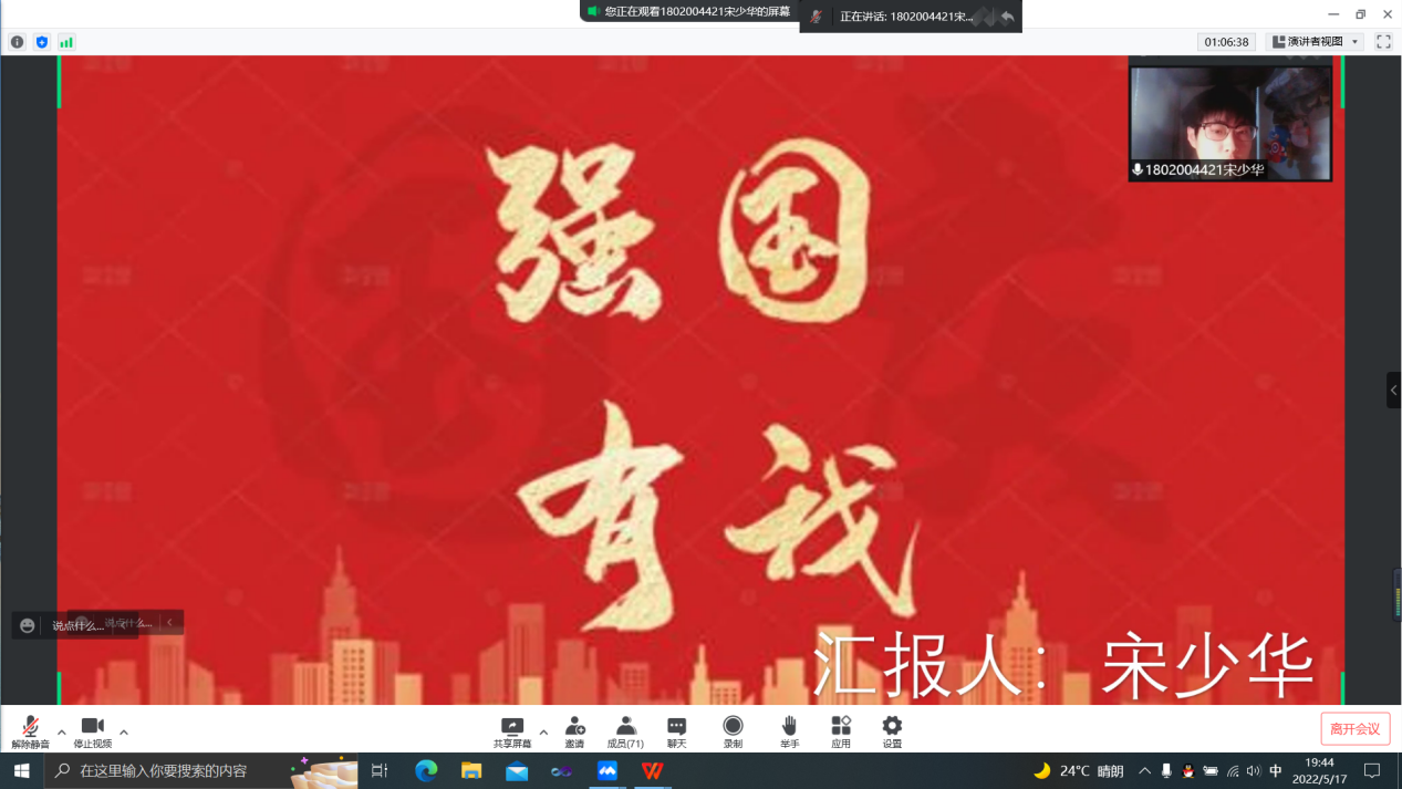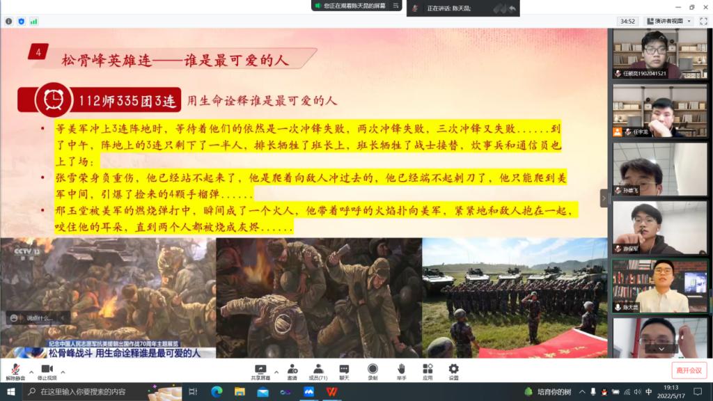 机械设计制造及其自动化专业第二学生党支部于2022年5月17日晚于腾讯会议开展“请党放心,强国有我”主题微党课初赛。