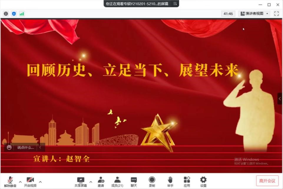 机械工程学院研究生第三党支部于2022年5月19日21:10线上开展了“请党放心,强国有我”微党课竞赛初赛活动。本次参赛赛选手共有5名。活动由党支部书记李雅婧同志主持,支部全体党员参加了此次活动。