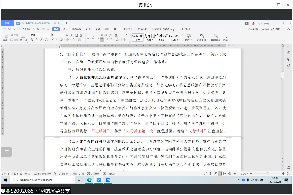 机械工程学院研究生第二党支部于2022年6月24日晚上20时在线上召开了理论学习会,学习内容为学习贯彻习近平总书记在四川考察时的重要讲话精神等五点。本次会议由党支部宣传委员马彪同志主持,马彪同志主讲,研究生第二党支部全体党员参加了此次会议。