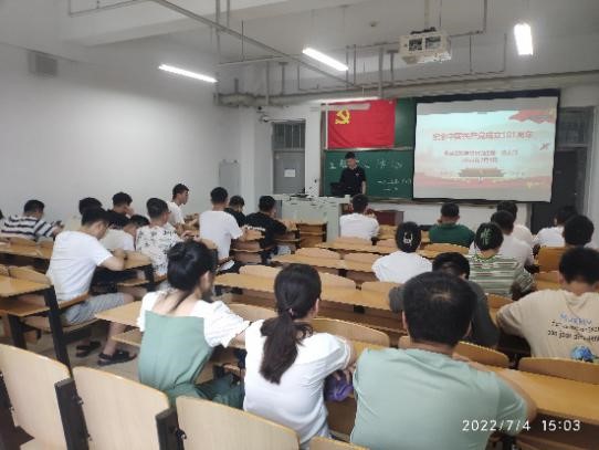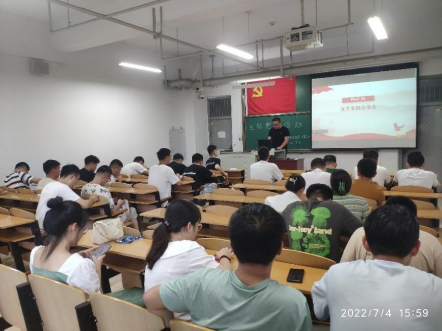 本次会议围绕“喜迎二十大,奋进新征程”主题,分别从观看红色爱国影片、重温入党誓词、讲党课、先进事迹分享等四方面展开。