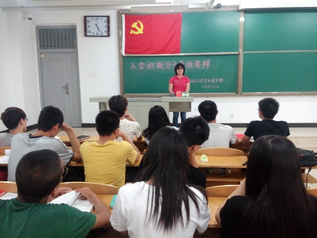 能源与动力工程学生党支部27名入党积极分子于2015年6月7日下午4:30在15102进行了入党积极分子考核答辩。本次答辩考核的评委是来自三支部的四位支部委员,党建办公室常务副主任岳翰同志也参与了此次打分环节。