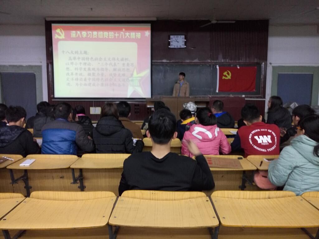 2015年11月23日上午8:30,能源与动力工程学生党支部根据院党委下发的通知,在07101教室开展了以“文明环保进公寓,奉献引领作风优”为主题的党日活动的理论学习,学习内容包括党的十八大精神、十八届五中全会精神以及新的党员发展细则等。