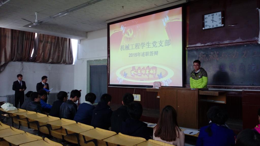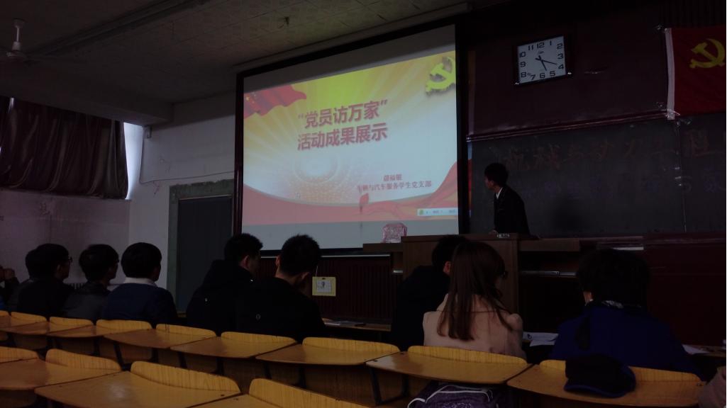2016年2月28日下午4点,我机械与动力工程学院在07101顺利召开了大学生党员访万家活动答辩会,参加此次会议的有罗佳老师和苗慧老师以及学院所有学生党员。