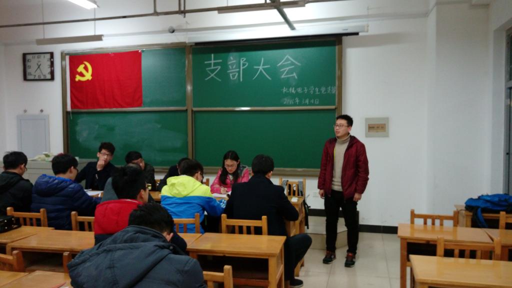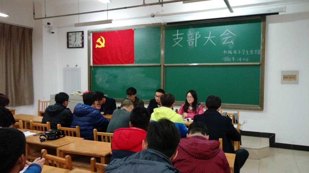 2016年3月11日晚7点,我机械电子学生党支部在15201教室召开了开学来第一次支部大会。