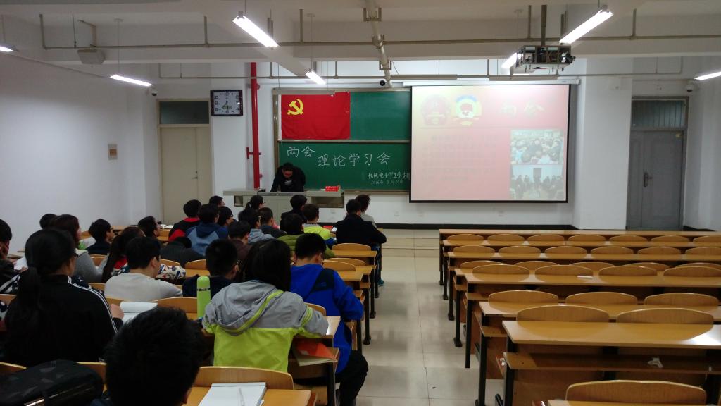 2016年3月20日晚7点,机械电子学生党支部召开两会理论学习会,此次会议由支部全体党员和所有积极分子与重点发展对象参加,大家学习了两会的热点内容,由五个党小组分别展示。