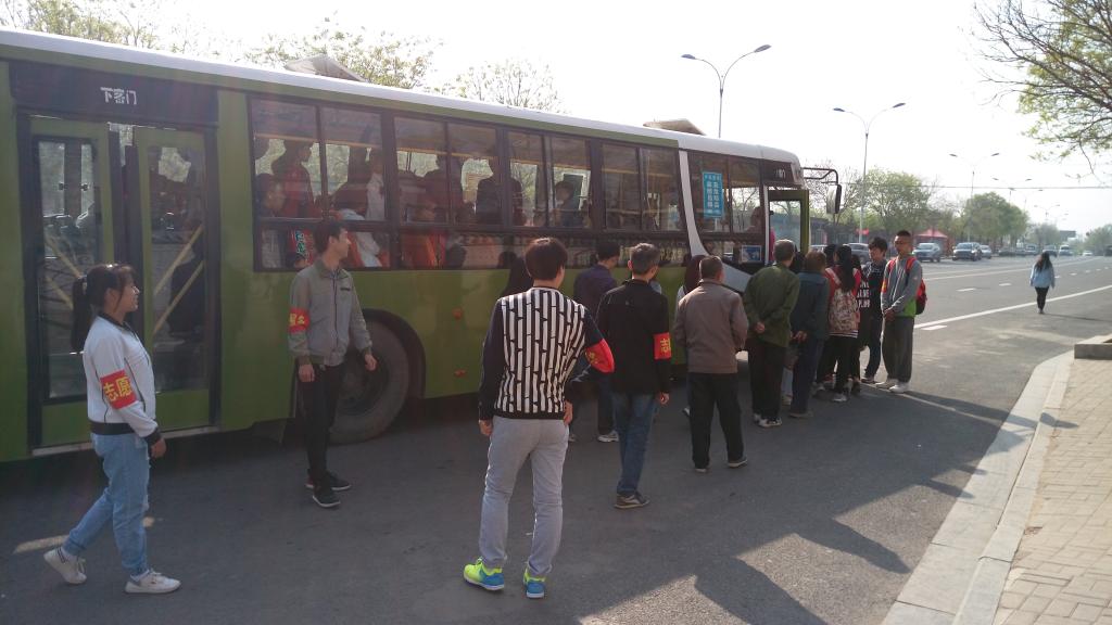 早上8.30,大家准时在文瀛楼下签到,经过了半小时的组织准备,9点活动准时开始,过程中由党建办公室李瑞新同志给各位打分。刚刚到835站牌那里,由于黑车的原因,护栏起不到应有的作用,然后我们开始组织大家排队,效果很明显,上车速度较之前快了很多,而且后面赶过来的人也都自觉地开始排队了,更是对我们的活动表示支持和赞赏。