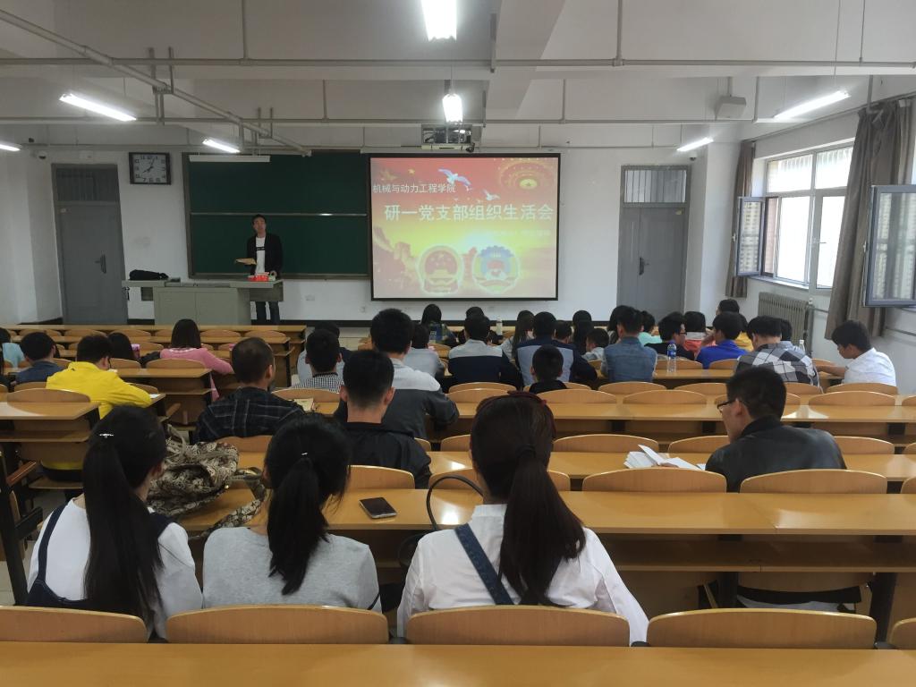 2016年4月22日,机械与动力工程学院15级研究生党支部在15102教室召开了以学习“2016年全国两会精神”为主题的组织生活会。参与本次组织生活会的有15级研究生党支部所有党员、发展对象和入党积极分子,本次组织生活会的内容是学习“两会”内容及其精神,会议由支部书记崔子梓同志主持。