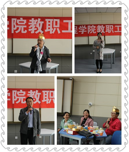 生日会由工会主席李秀玲老师主持,党委书记张清老师首先致辞,她肯定了学院工会的精心组织和安排,认为生日会的形式给全体教职工提供了一个交流和促进感情的平台,对于增加学院的凝聚力具有积极意义,并对过生日的教工送上了生日祝福。之后,本次生日会的寿星一起上台,合唱生日歌、切蛋糕、发放生日纪念品以及合影留念。寿星代表王爱玲老师、张瑞雪老师、薄瑞峰老师用优美的歌声表达心中的情感,获得了大家的热烈掌声,各位寿星分享了心情感言,畅谈了生活近况,老师们互相交流,畅所欲言,欢声笑语不断。