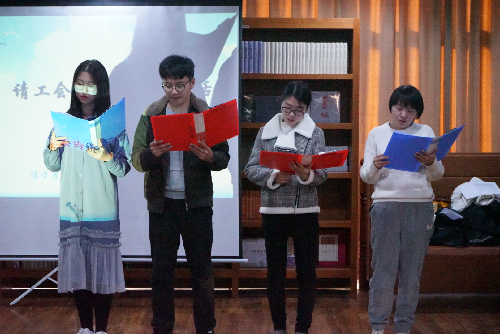 之后,院领导声情并茂地领读了《顶天立地谈信仰》中的片段,开始了读书会的分享。尤其是全体年轻教师结合书籍内容畅谈自己进入机械工程学院这个大家庭后的初心与努力,点点温情流露在联谊会现场。最后,由学生科辅导员共同郎读《我是教师》,他们用洪亮的声音为这个神圣的职业代言,他们用真挚的情感向全体教师祝愿。