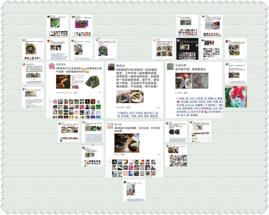 老师们在自己的微信朋友圈中分享与家人包粽子、吃粽子,结彩带等的温馨时光,还有的老师与子女一起画画、讲故事,将端午节的来历与风俗,将中华民族节日的文化底蕴与爱国情怀传递给下一代。浓浓的端午情借助朋友圈在教职工之间传递,老师们互相留言,或热心传授包粽子诀窍,或暖心鼓励家有考生一定高“粽”,或贴心表达你最“粽”要的感恩,心与心的距离贴的更近。