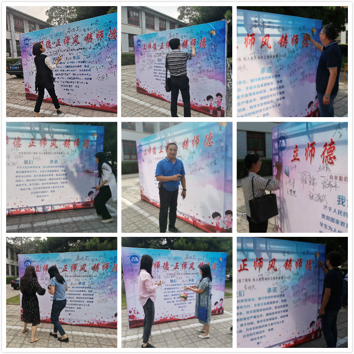 为切实加强我院师德师风建设,进一步明确每一位教职工对师德师风建设应负的责任,努力提高学校师德师风建设的整体水平,机械工程学院于2020年9月9日在工字楼前举办“立师德,正师风,铸师魂”师德师风承诺活动。