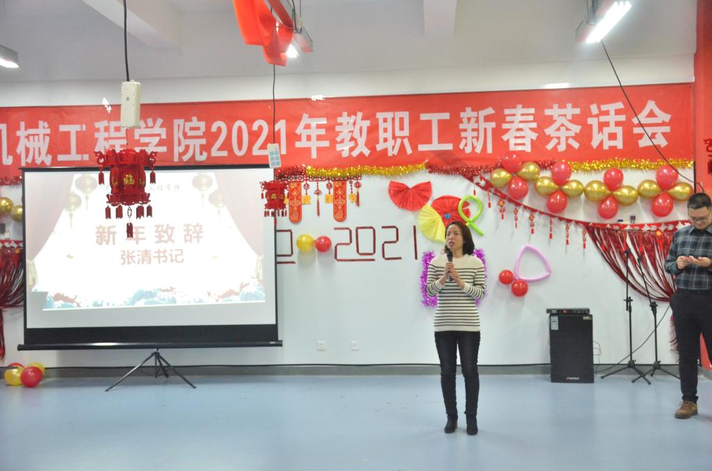 一元复始,万象更新。为加强学院教职工之间的交流,营造学院团结向上、和睦融洽的氛围,共同迎接新年的脚步。12月31日下午,机械工程学院2021年教职工新春茶话会在工程训练中心C308举行。学院党委书记张清、院长祝锡晶、院党委副书记/工会主席李秀玲、副院长苗鸿宾、副院长曾志强等院领导出席新春茶话会,与全院教职工携手辞旧迎新。