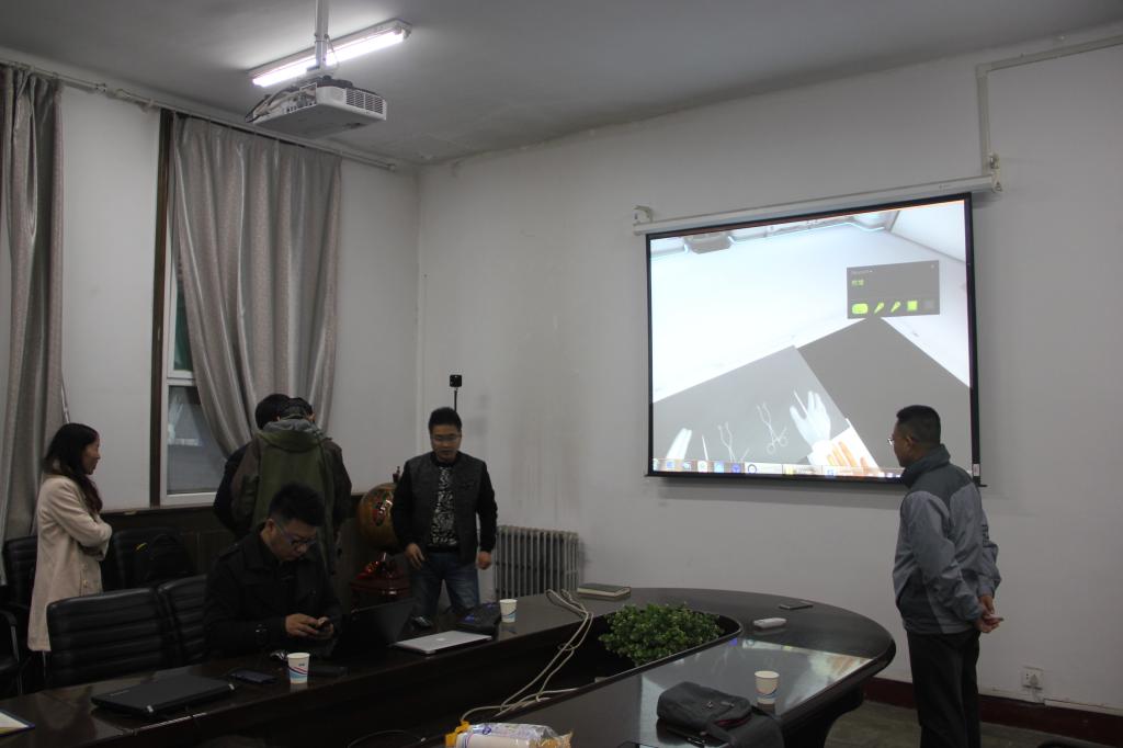 随后,参会教师讨论了VR技术在专业实验教学中的应用前景及各学科团队的技术需求。山西思软科技有限公司技术团队示范了相应的试验设备,部分教师进行了现场体验。
