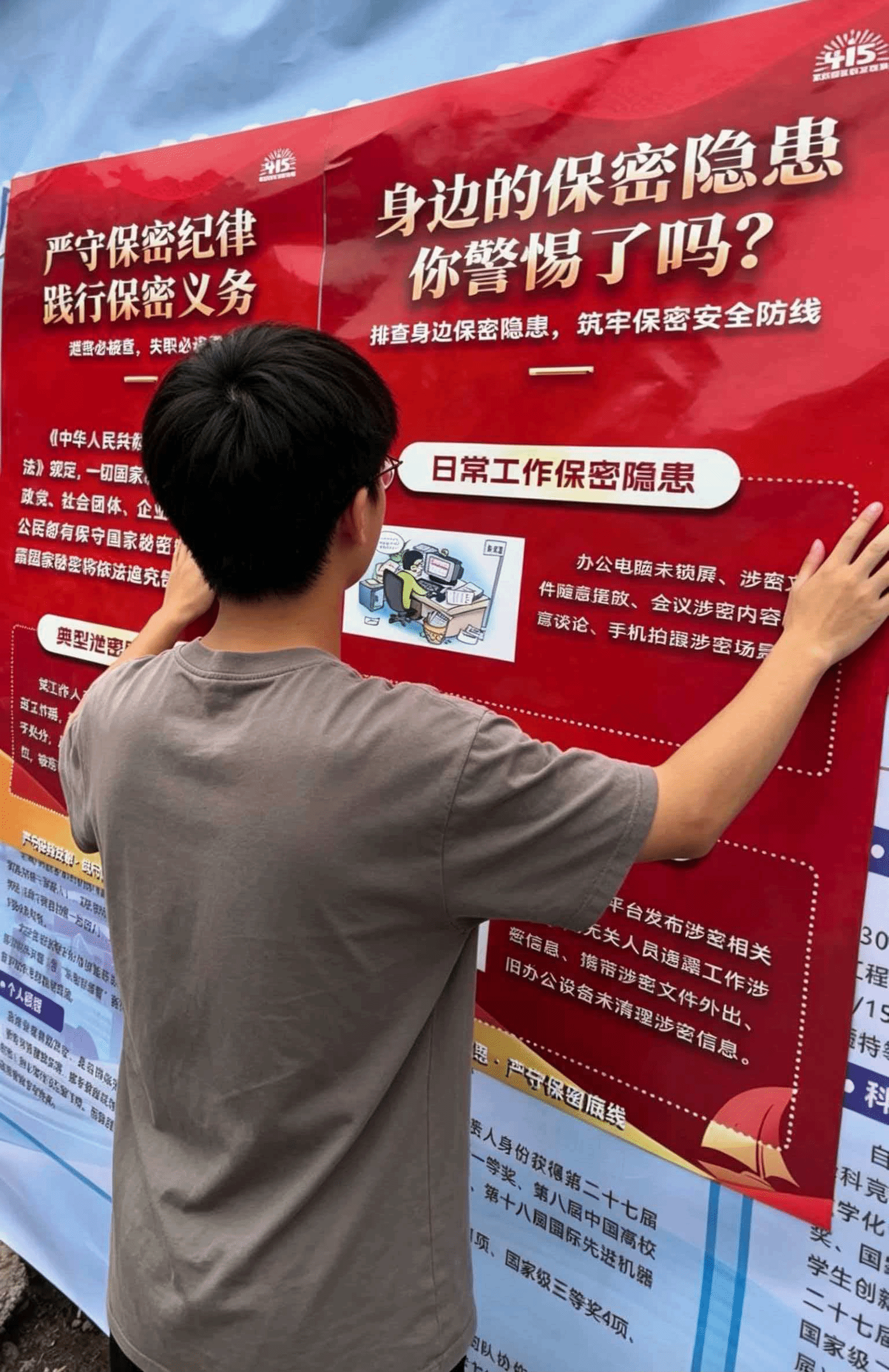 本次活动紧扣“排查身边保密隐患,筑牢保密安全防线”这一主题,通过制作张贴系列宣传海报、现场展示教育内容等形式,面向师生普及了国家安全相关知识,提醒大家警惕日常工作和生活中的泄密风险。