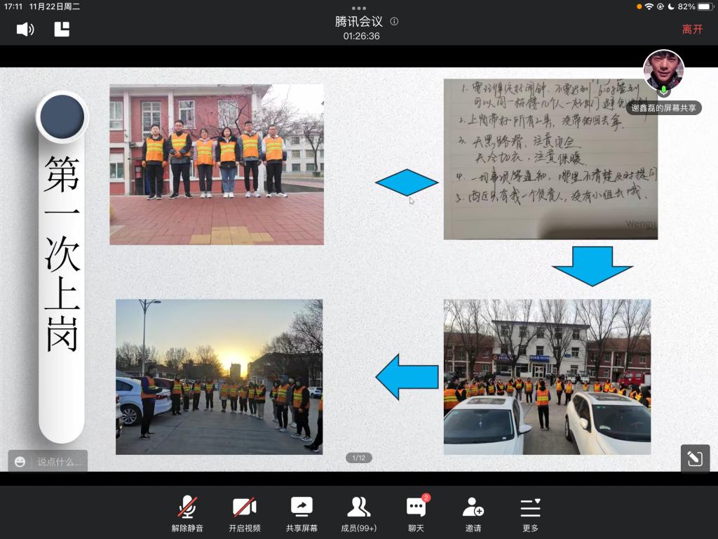 会议第三部分,立足校园•服务社会。卫生队队长谢鑫磊分享了他在勤工助学过程中的点点滴滴。他说:对勤工助学精神的认知,两句话来概括“艰苦奋斗的作风,坚韧不拔的意志”。勤工助学的过程不仅仅是劳动学习的过程,更是一个“体验、交友、劳动”的综合过程。