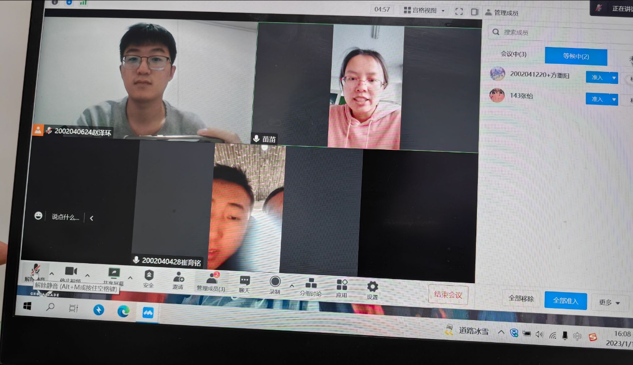 2023年1月13日,2002143班班主任董苗苗老师带领生活委员借助腾讯会议开展寒假家访家庭经济困难学生工作。在会议中与学生和家长进行面对面谈话,首先老师向家长及学生传达了政策内容,使得各项资助政策深入学生头脑。并了解了学生的家庭经济状况,家人的身体状况及学生家庭环境。与家长交流了学生的在校情况。同时,董苗苗老师也同身为大三的同学谈到毕业后的选择,提醒学生提前思考,准备。