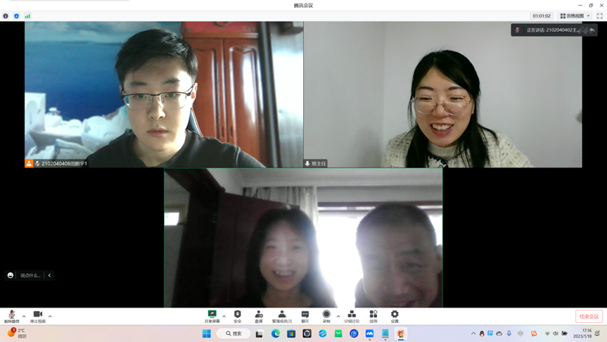 2023年1月18日,21020404班举行了线上家访活动。班主任程希冉老师先对每个同学的家庭情况做出了了解,并且向家长以及这五位同学介绍了我校的奖助政策和勤工助学的重要性,激励同学通过努力学习争取奖学金,为学生们设立了正确的奋斗价值观。班主任还利用这次机会向学生家长反馈了受访学生在校的学习、生活情况,使学生家长参与其中,与学校一起更好地开展学生的教育工作。